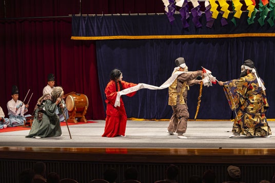神楽(かぐら)は、日本の伝統的な舞踊や音楽を含む芸能で、神道の祭祀や儀式に奉納されるものです。神話や伝説を題材とし、華やかな衣装や神楽面を用いて、太鼓や笛の囃子に合わせて舞います。古代から神々への感謝や祈りを表現する目的で行われ、地域ごとに独自のスタイルが発展しました。現在では、祭りやイベントなどで上演されることが多く、地域文化の象徴として親しまれています。