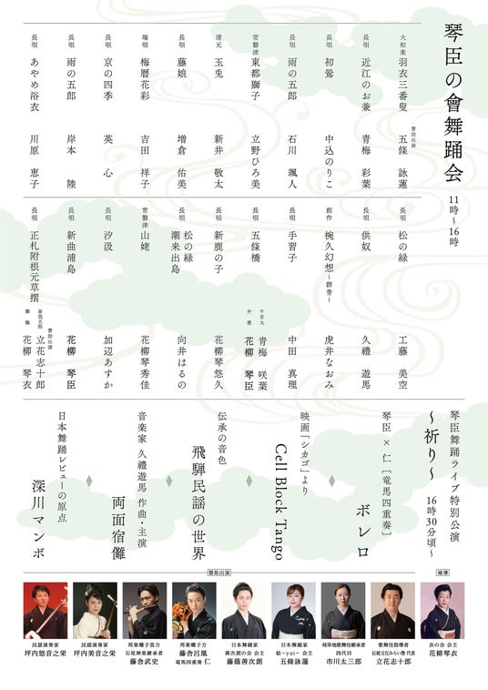 また、花柳琴臣がライフワークとしてきた日本舞踊の普及活動「舞踊ライブ」の演目を主軸に「祈り」をテーマとした構成の『琴臣舞踊ライブ特別公演 ~祈り~』も併せて上演いたします。