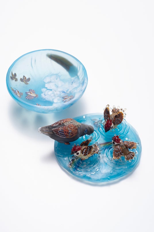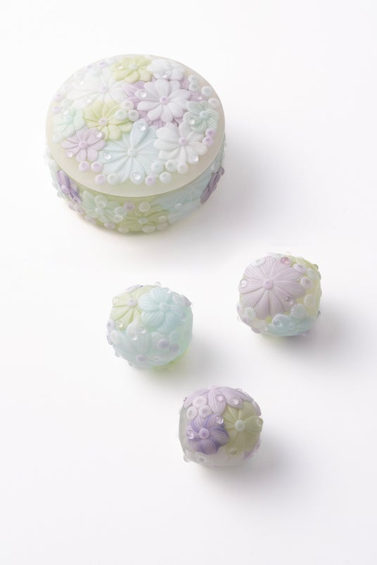 今展では、蓋物や器、オブジェ、帯留め、トンボ玉など、作家それぞれの想いが込められた、掌中に収まる美しくて愛らしい作品が一堂に会します。日々の暮らしに彩を添える小さな宝物の数々をぜひ会場でご覧ください。