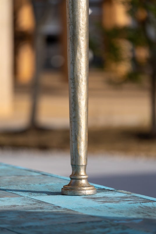 用いたのは、細く素朴な装飾を施した柱。自然物を抽象化した原初的なデザインによって、柱は「構造材」というよりも「自然に近い存在」として、人の無意識に穏やかに溶け込んでいきます。