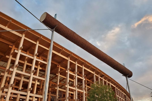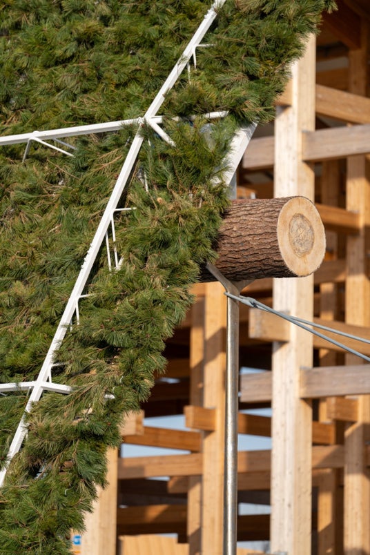 これらの構成は、祇園祭の山鉾建てや、春日大社おん祭の仮御殿といった伝統的な祝祭から学んだものです。人の手によって丸太を建て起こし、屋根を葺く--そうした行為そのものが、場を祝祭へと変えていく。