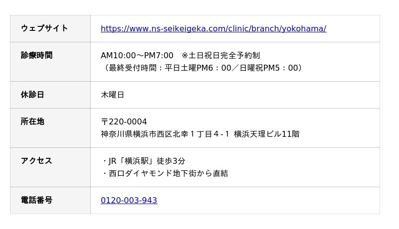 SBC横浜駅前整形外科クリニック クリニック情報