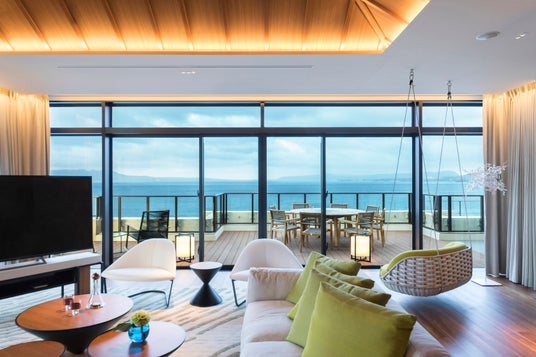 ▲エメラルドブルーの海に包まれる、180度の眺望が魅力の沖縄最大級のスイートルーム