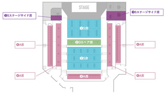 S席:9,800円/DXペア席:10,500円/Sステージサイド席:9,800円/A席:8,800円