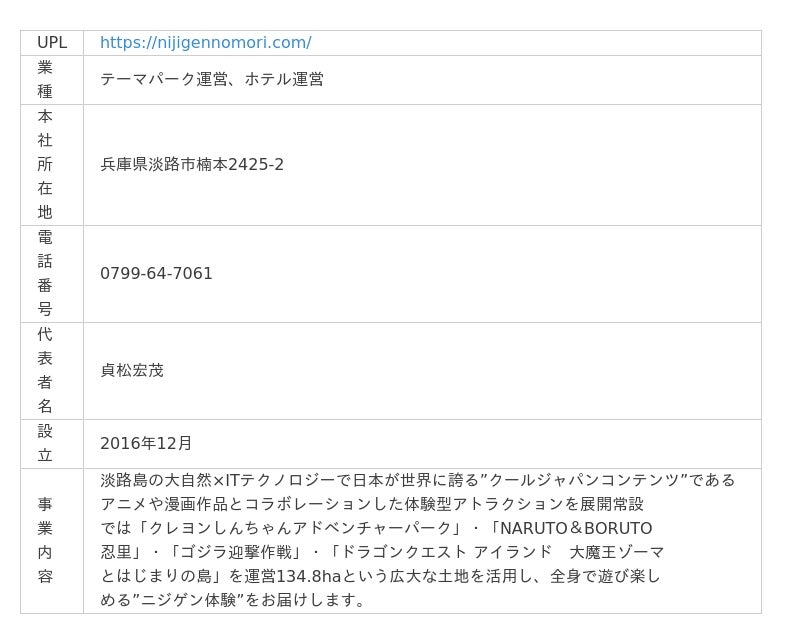 お問合せ: 株式会社ニジゲンノモリ 「ニジゲンノモリ」運営事務局 Tel 0799-64-7061