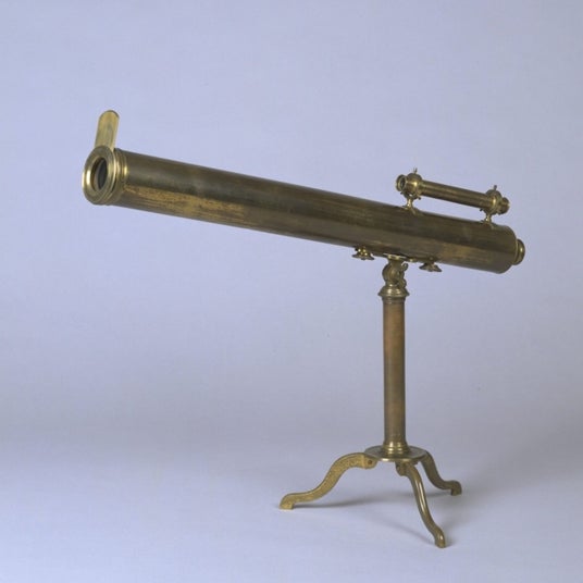 (4)【重要文化財】折式望遠鏡 江戸時代後期(19世紀) 大阪歴史博物館蔵(羽間平安氏寄贈) 大坂の天文学者、間重富(はざま しげとみ)(1756~1816)の息子・重新(しげよし)(1786~1838)が使った天体観測用望遠鏡です。文政6年(1823)にオランダから幕府に献上され、大坂で御用測量にあたっていた重新に貸し下げられました。間重富は大坂長堀の裕福な商家に生まれ、我が国で初めて西洋天文学による寛政暦法を完成させ、幕府の改暦に貢献しました。間家の観測資料は幕府天文方の資料が限られるなかで、江戸後期の天体測量資料として大変貴重です。