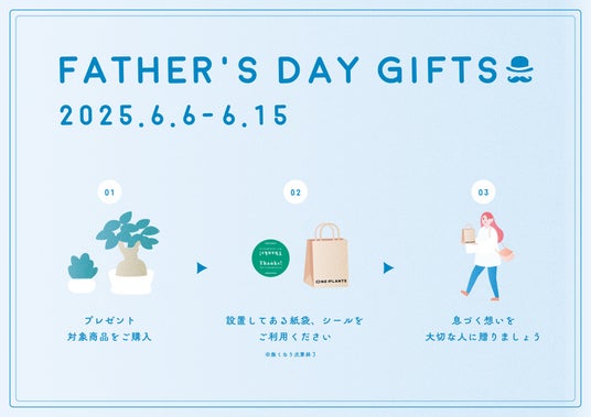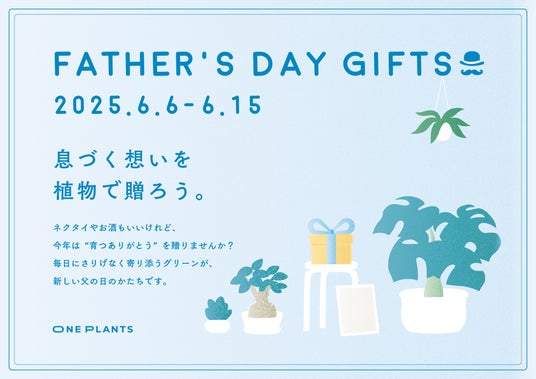 静岡県内に店舗を構える観葉植物専門店「ONE PLANTS」(運営:ONE PLANTS)は、父の日(6月16日)に向けて「FATHER’S DAY GIFTS ~息づく想いを植物で贈ろう~」キャンペーンを、2025年6月6日(木)~6月15日(日)まで開催いたします。 本キャンペーンは、従来のネクタイやお酒などの定番ギフトに代わり、「育てることで感謝の気持ちが長く残る」植物ギフトの魅力を提案するものです。 ギフト対象商品をご購入いただいたお客様には、メッセージシールと専用紙袋を無料でご提供し、そのまま贈れる仕様でご用意しています(※数量限定・なくなり次第終了)。