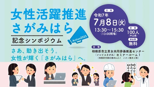 相模原市では、働く女性、これから働こうとする女性、そして女性活躍推進に取り組む企業に対しさまざまな取組を行っています。その一環としてこのたび「女性活躍推進さがみはらAction2025記念シンポジウム」を7月8日(火)に開催します。