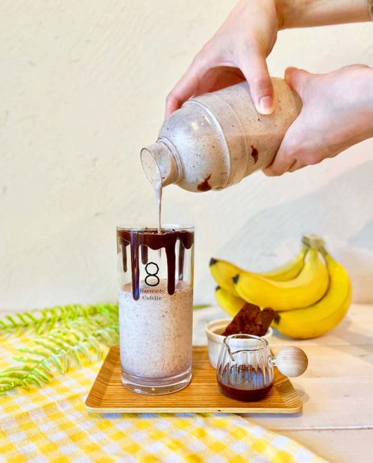 お客様にシェーカーを振っていただくことで、チョコバナナスムージーを完成していただきます。