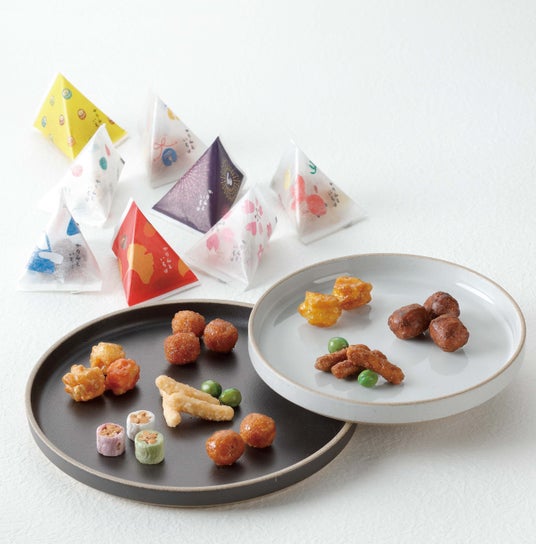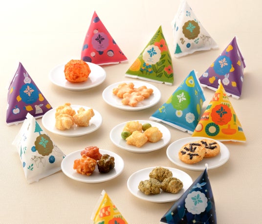 [おかき]や[あられ]が食べきりサイズの可愛いらしい個包装に入っています。