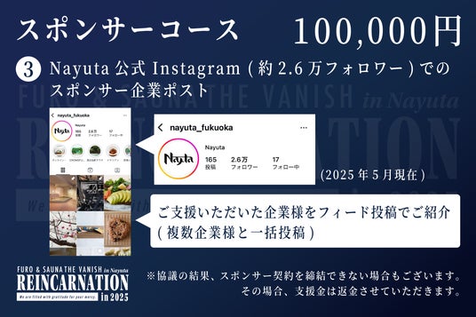 Nayuta (所在地: 福岡県糟屋郡久山町久原1822, 代表: 前田耕平) は、2024年12月31日未明 (お客様、スタッフ不在の営業時間外) に発生した火災により焼失した薪サウナ棟の再建を目的として2025年6月13日12:00(正午)よりクラウドファンディングを開始いたします (CAMPFIREにて実施) 。