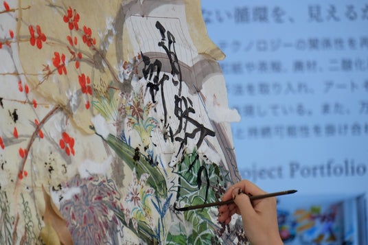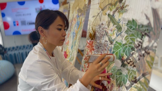 和紙を使って作品を描くGXアーティスト宇都宮涼子氏