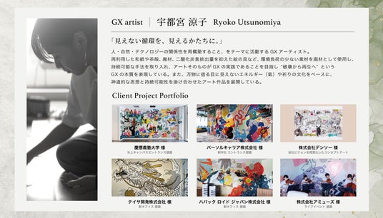 「GXとは、単なる技術変革ではなく、人間と自然の関係性そのものを再構築すること」という思想に基づき、自然の声なき声に耳を澄ませ、大気・水・土・光・命・氣といった“見えない循環”を、アートによって可視化する試みです。