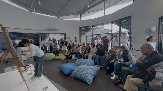 ライブペイントを行うGXアーティスト宇都宮涼子氏と来場者