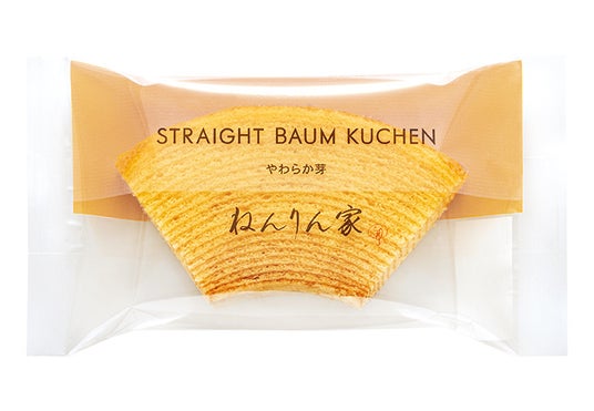ねんりん家の誇る二大バームクーヘンのひとつ『ストレートバーム やわらか芽』。日本の味覚にふさわしい柔らかさを目指し、たっぷりの卵を贅沢に使ってふっくらとジューシーに焼き上げました。