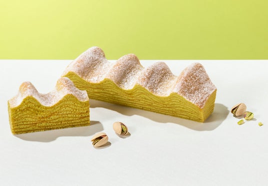 ナッツの女王「ピスタチオ」を惜しみなく使用しました。高品質として知られる“カリフォルニア産ピスタチオ”をじっくりと焙煎し、旨味たっぷりのペースト状に。濃厚なバター風味の生地にとろりと練り込んで、一層一層丁寧に焼き上げました。外はカリッと、中はしっとり熟成。ピスタチオとバターが出会うことで生まれる芳醇なコクとふくよかな甘みは、まさに贅沢。ひとくち頬張るとたちまち広がる、香ばしいピスタチオフレーバーも存分にお楽しみください。