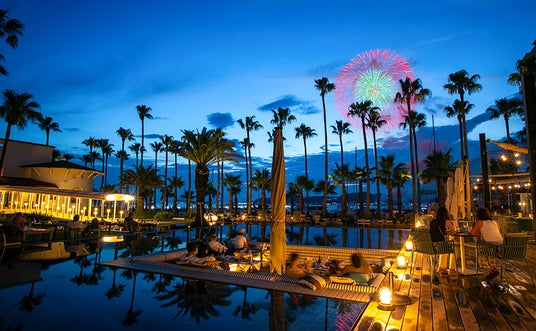 サンセットタイムに絶景のプールサイドでグリルビュッフェを愉しみ、専用エリアで花火観覧。グループ利用や接待にも最適。