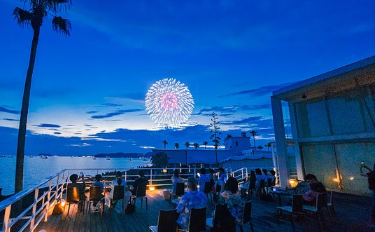 花火打ち上げ会場である鎌倉・由比ヶ浜の至近距離に位置するリビエラ逗子マリーナは、人混みを避けながら、美食とともに花火をゆったりと鑑賞できる特等席として、毎年高い評価を得ています。今回も全席指定・事前申込制で、上質な時間をお届けします。