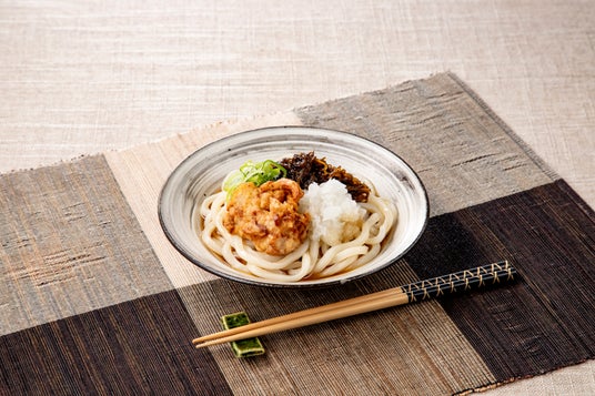さっぱりとした味付けの沖縄県産もずくと鶏天を組み合わせ満足感ある冷たいうどんです。