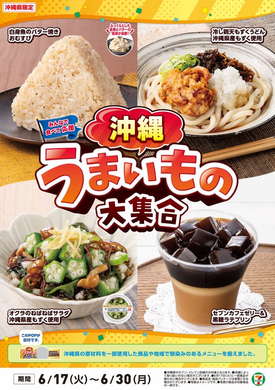 全国を11エリア(※1)に分け、そこでしか味わえない商品を発売!【沖縄県エリア限定】「沖縄うまいもの大集合」を6月17日(火)から開催!地元で愛される味を活かした7商品を新発売!