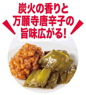 京野菜の万願寺唐辛子を炭火でじっくり焼き上げ、香ばしさとほんのりとした甘みを閉じ込めました。甘辛く味付けした鶏そぼろと合わせ、風味豊かなおむすびに。京の味わいを手軽に楽しめる一品。