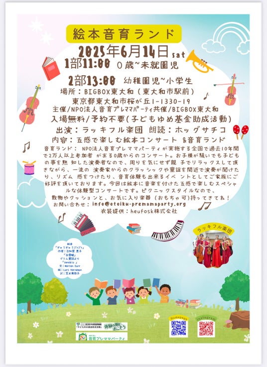 2025年開催!子育て支援と文化振興を目的とした関東信越規模の絵本と音楽の体験イベント「音育ランド」~経済格差を超え、すべての子どもたちに平等な文化体験を~