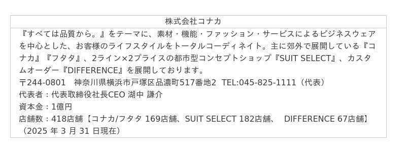 株式会社コナカ(本社:神奈川県横浜市、代表取締役社長CEO:湖中謙介)が、リアルスーツをコンセプトに展開している『SUIT SELECT(スーツセレクト)』は、加速するビジネス