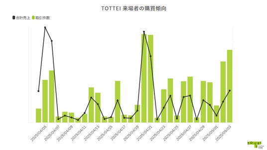 1万人収容規模のアリーナである中、アリーナイベント開催日には1万人を超える来場を記録しています。特に、「TREASURE」のライブコンサートが1日2公演開催された4月24日(木)や、「あいみょん」のライブコンサートが開催された5月3日(土)などは2万人を超える来場者を記録しました。これはTOTTEI PARKでのイベント利用者も合算した数値となりますが、音楽コンサート来場者に関しては「イベント前からパークイベントを楽しむ、オフィシャルグッズを購入した上で開演まで楽しむ、周辺を回遊する」などの動きがみられました。