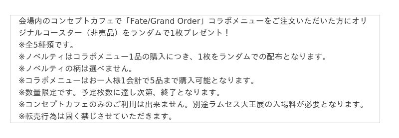 ■ラムセス大王展×「Fate/Grand Order」コラボメニュー&ランダムコースター