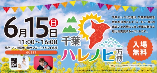 同日アリオ蘇我1階サンコートイベント広場では、千葉の地域活性化を目的とし、千葉の人、モノ、食の出会いを創出する「千葉ハレノヒ万博」も開催いたします。
