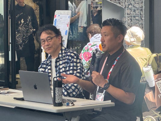 5月28日に開催された第1回目では、2025年大阪・関西万博 EXPO共創プログラムディレクターでありパノラマティクス主宰の齋藤 精一氏と、公益財団法人日本デザイン振興会常務理事の矢島 進二氏による、オープニングトーク。そしてCDC2023、CCDC2024で生まれたプロダクトの選定事業より、象印マホービン株式会社、一般社団法人吉野と暮らす会、信楽陶器工業協同組合、丸滋製陶株式会社、特定非営利活動法人府中ノアンテナの4事業者から、各プロダクトに込めた思いや制作過程などのトークがフューチャーライフヴィレッジのTEステージで繰り広げられました。