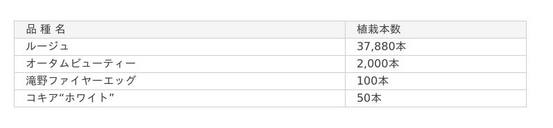 昨年植栽した「ルージュ」をメインに、一部のエリアで異なる品種もご覧になれます。また、今年はコキアの多様な姿を楽しめる「コキア見本園」が新たに登場。定番の「ルージュ」、「オータムビューティー」をはじめ、燃えるような赤色が特徴の「滝野ファイヤーエッグ」や「コキア“ホワイト”」など、個性豊かな品種が勢揃いします。品種ごとの形や色合いの違いを間近で観察できる、新スポットです。