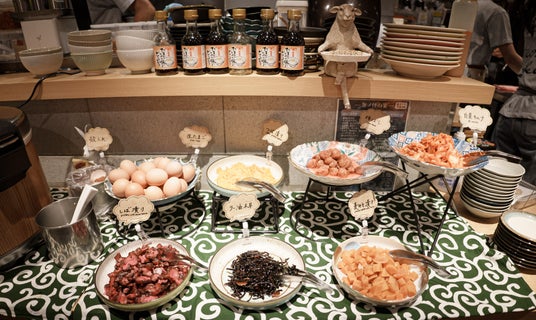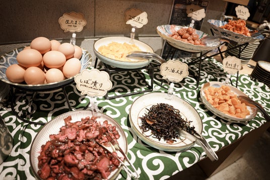 すべての定食には、ごはん・みそ汁の食べ放題、8種以上のごはんのお供ビュッフェ、温かいお茶のビュッフェが付いており、お好きなだけお楽しみいただけます。