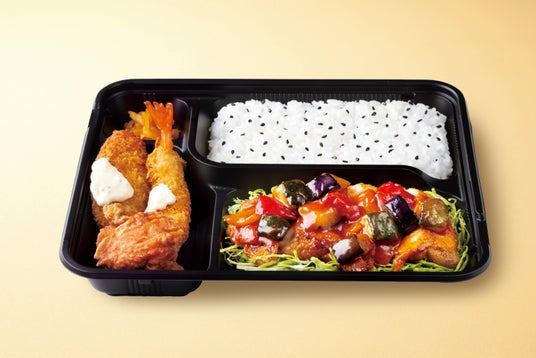 白身フライ・海老フライ・唐揚げの入った「Dx旨トマトチキンステーキ弁当」も同時に販売します。