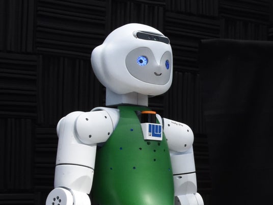 人と一緒に暮らすことを目指して開発されたパートナーロボットです。人の意図をAIによって推定し、それに合わせた動作をするために、言葉だけでなく声の調子や人の動き、持ち物などのさまざまな情報を組み合わせて認識し、次に行うべき行動や発する言葉を判断します。
