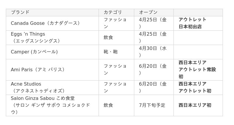 ※西日本エリア アウトレット初出店・オープン日:6月20日(金)