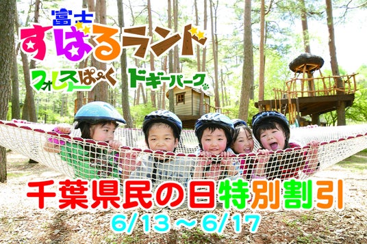 富士観光開発株式会社(本社:山梨県南都留郡、代表取締役社長:志村和也)が運営する、自然に囲まれたファミリー向けテーマパーク「富士すばるランド」では、6月15日の「千葉県民の日」を記念し、6月13日(金)~6月17日(火)の5日間、千葉県民の方限定で「入園料(お一人様2,000円)」または、入園料とアトラクション乗り放題券がセットになった「ワンデーパスポート(通常価格:大人3,700円、子供3,100円)」を特別価格お一人様300円割引で販売いたします。