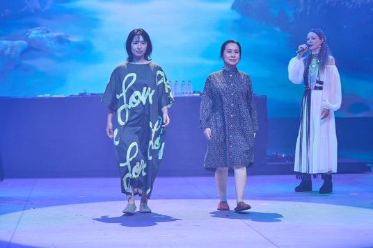 前半では、「Urban Wellbeing(都市型ウェルビーイング)」「Unique Classics(ユニーク・クラシックス)」「New Environment(環境に優しい新しい挑戦)」という3つのテーマで、フィンランドのライフスタイルとファッションブランドによるランウェイショーを展開。各ブランドの衣装を身にまとったモデルのバックグラウンドには午前の部の公式オープニングセレモニーでも登場したTuuletar(トゥーレタル)がパフォーマンスを披露。まさにロック音楽と最先端の北欧ファッションが融合した斬新な演出に会場も熱気に包まれました。