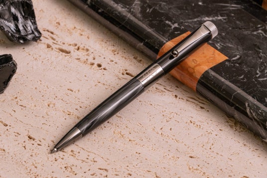 ブランドを代表するアイコニックなボールペン・ROMEO No.3に、黒曜石を意味する「オブシディアン」の名を冠した2025年限定生産モデルが登場。黒曜石を思わせるつややかな光沢感と、マザーオブパールの繊細な煌めきが生み出す立体感と奥行きのあるマーブル模様、そしてブラックガンメタルカラーのトリムが、洗練されたエレガンスと力強さを感じさせます。