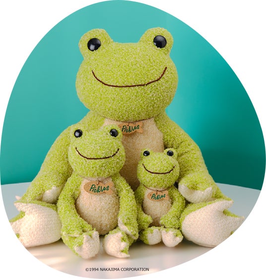 かえるのピクルスこと、pickles the frogは1994年に「ぬいぐるみも雑貨のようにオシャレに」をコンセプトに、オリジナル生地を使用した雑貨系ぬいぐるみとして誕生しました。