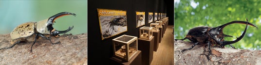 ヘラクレスオオカブトをはじめ、ネプチューンオオカブトやグラントシロカブトなど世界中のめずらしいカブトムシ・クワガタが大集合!