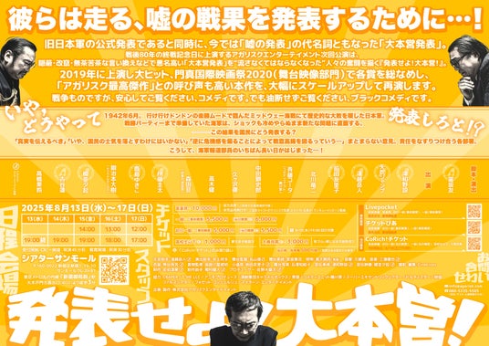 終戦80年の記念すべき年、アガリスク史上最大規模でお届けする「発表せよ!大本営!」にどうぞご期待ください。