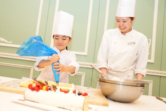 ●1.ちびっ子パン作り体験/2.ちびっ子フルーツロールケーキ作り体験コック服に着替えてシェフに変身。ホテルのバックヤードツアーとして、普段は立ち入ることができないキッチンをご案内します。パティシエによる丁寧な指導のもと、実際に手作り体験をしていただきます。完成したパンやロールケーキは、お持ち帰りいただくことも可能です。