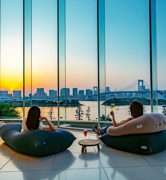 3.お台場サンセット×Yogibo 夏のchill体験ファニチャーブランド「Yogibo」との初コラボレーション。眼前に海が広がるガラス張りのチャペルを特別開放し、レインボーブリッジを望む絶景ロケーションでのリラックスタイムを提供。
