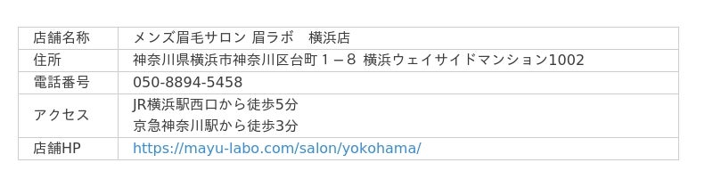 「メンズ眉毛サロン眉ラボ 横浜店」は、JR横浜駅西口から徒歩5分 / 京急神奈川駅から徒歩3分とアクセスしやすい場所にあります。