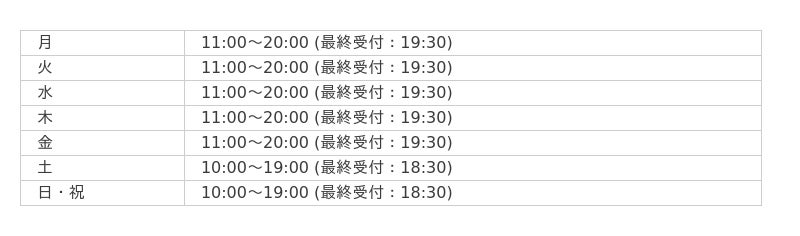 メンズ眉毛サロン 眉ラボ 大阪京橋店 の営業時間は以下の通りです。
