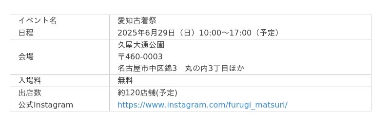 古着祭は2010年に大阪で誕生し、日本初の大規模古着マーケットイベントとして多くの古着ファンから支持を得てきました。今回の「愛知古着祭」は、その伝統を受け継ぎつつ、名古屋という新たな舞台でさらに規模を拡大し、全国から120店舗の古着屋が出店予定です。