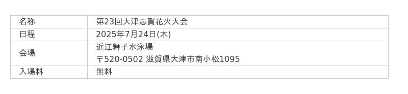 2025年7月24日(木)に近江舞子水泳場(滋賀県大津市)にて開催される、”第23回大津志賀花火大会”の有料観覧席の販売についてお知らせします。
