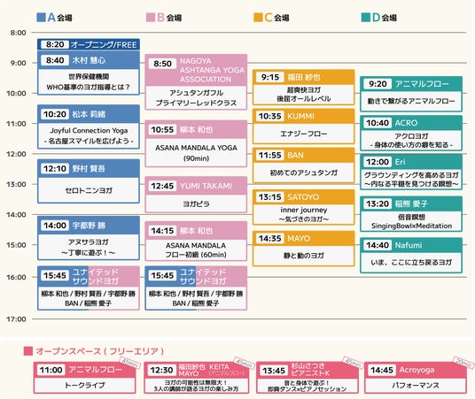 アシュタンガ、フロースタイル、後屈、アクロヨガ、アニマルフロー。流派やジャンルを超え、身体と心に響く「本物」のヨガが、この一日に集結します。