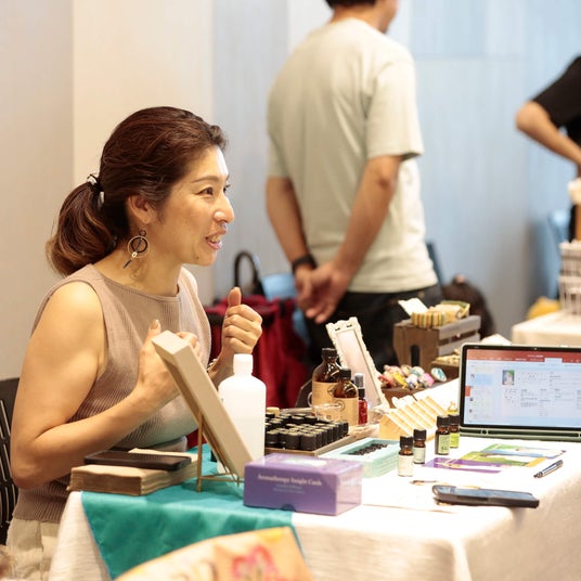 会場内では、ヨガウェアやマット、スピリチュアルアイテムのブース、身体に優しいフード&ドリンクも展開。